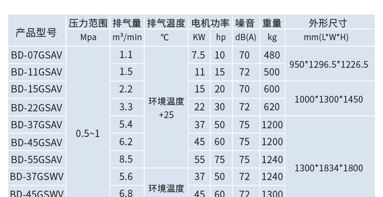 葆德無油水潤滑空壓機(jī)特點(diǎn):純水潤滑,無油污,無需清洗等,型號:BD-07GSAV、BD-11GSAV、BD-15GSAV、BD-22GSAV、BD-37GSAV、BD-45GSAV、BD-55GSAV、BD-75GSAV、BD-90GSAV、BD-110GSAV、BD-132GSAV